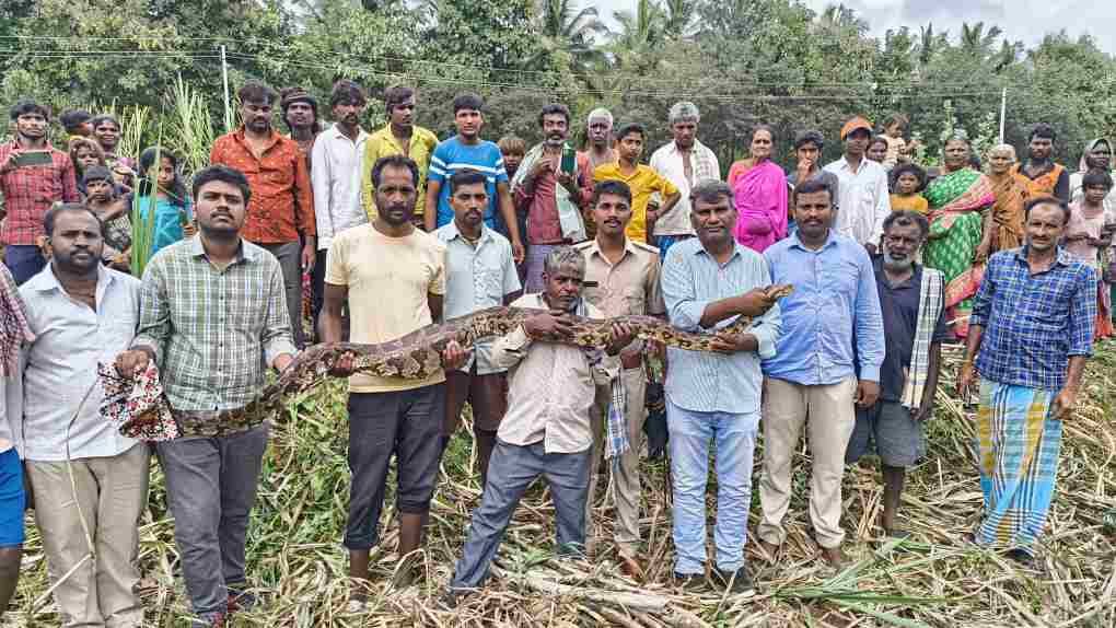 ಮಂಡ್ಯ ತಾಲ್ಲೂಕಿನ ದುದ್ದ ಹೋಬಳಿ ಬೀಚನಹಳ್ಳಿ ಗ್ರಾಮದ ಪುಟ್ಟಸ್ವಾಮಿಗೌಡರ ಕ ಗದ್ದೆಯಲ್ಲಿ ಕಬ್ಬಿನ ಬೆಳೆ ಕಟಾವು ಮಾಡುವ ಸಂದರ್ಭದಲ್ಲಿ ಸುಮಾರು 12 ಅಡಿ ಉದ್ದದ,35 —40 ಕಿಲೋ…